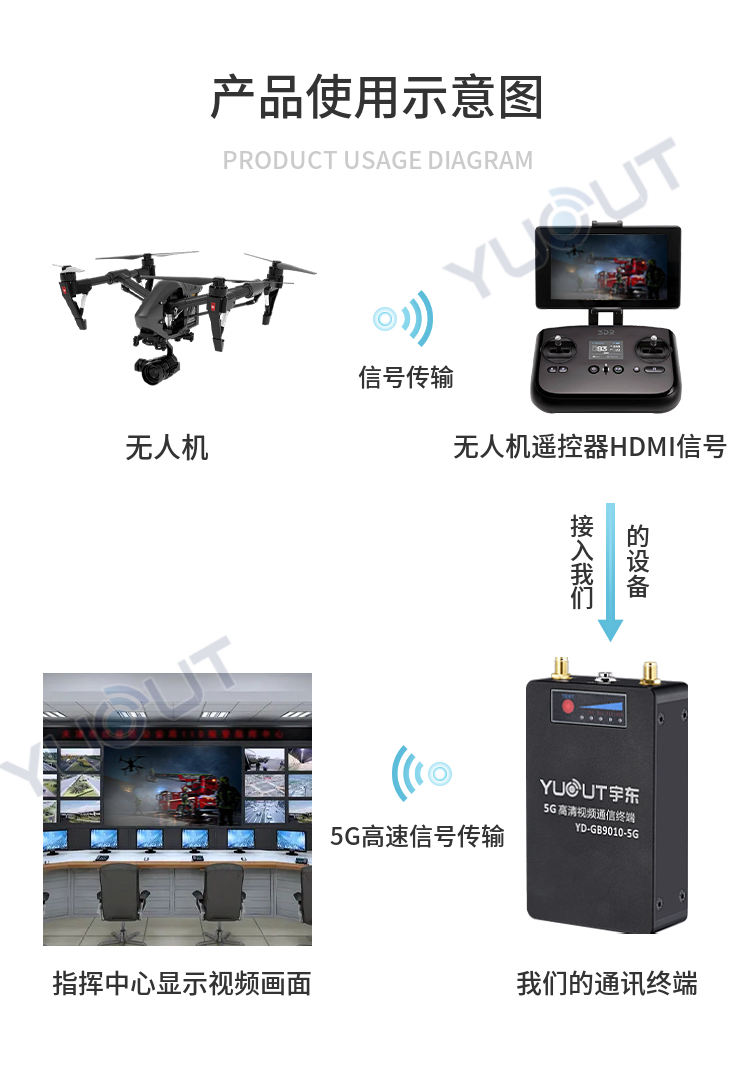 YD-GB9010-5G 高清視頻終端采用嵌入式系統架構,采用高性能H.265 編解碼處理器設計。設備支持視頻采集、編碼壓縮、傳輸、雙向對講功能。